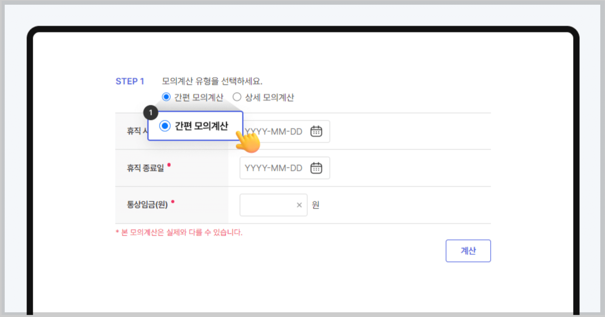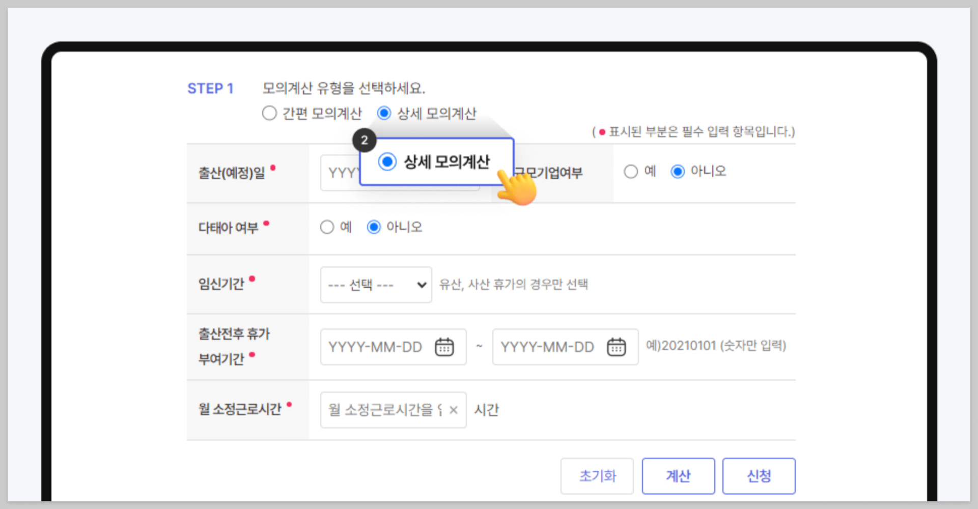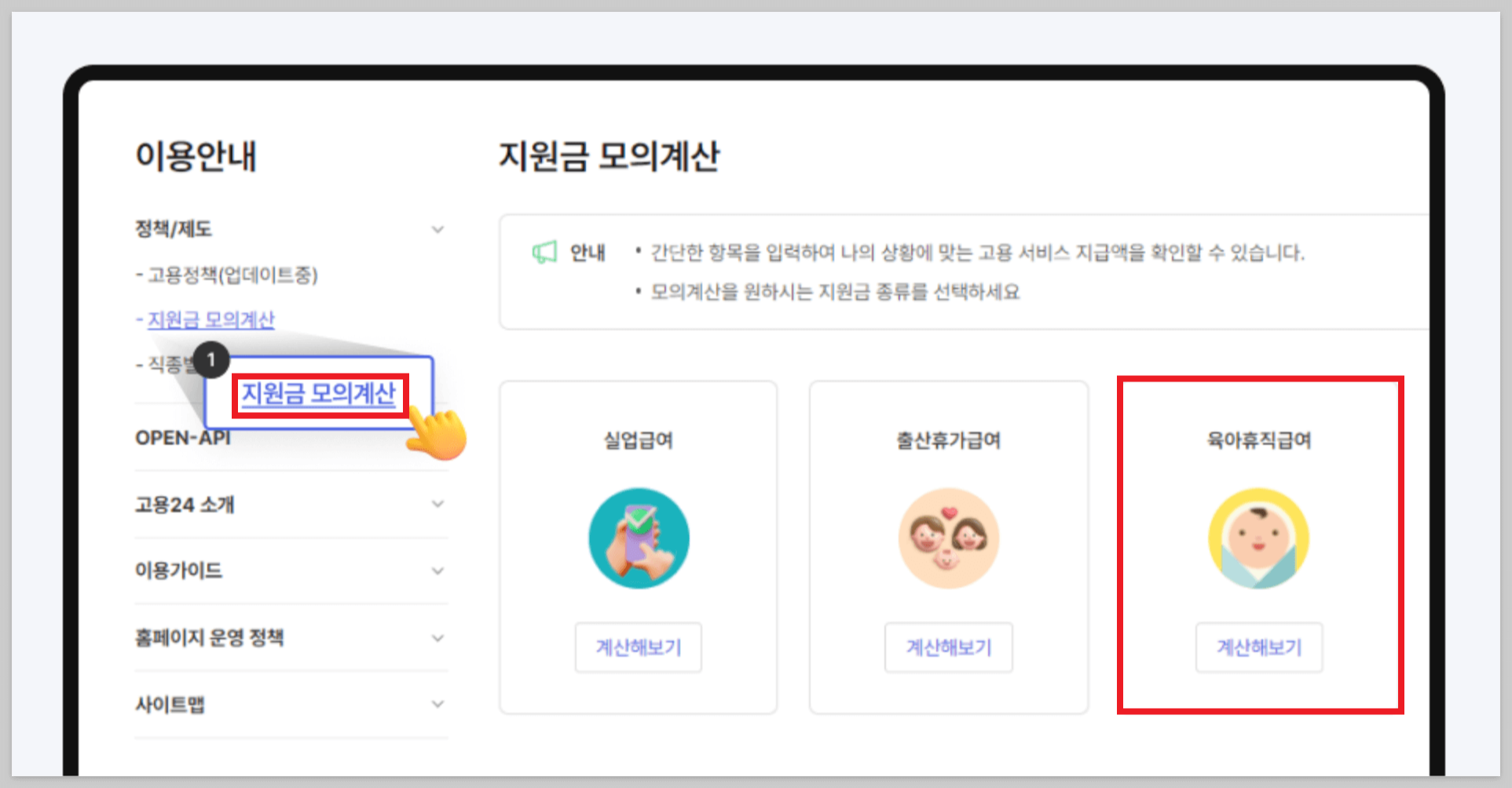 육아휴직급여 모의계산 따라하기